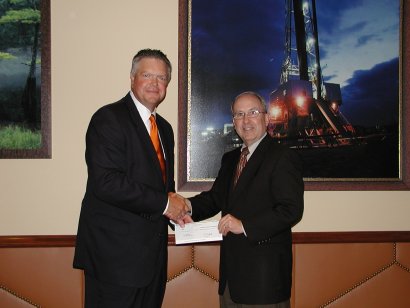 Gene Batchelder presents the check to David Thompson.