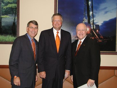 Jerry Gill, Executive Director of the Alumni Association, with Gene Batchelder and OSU President Dr. Schmidly.