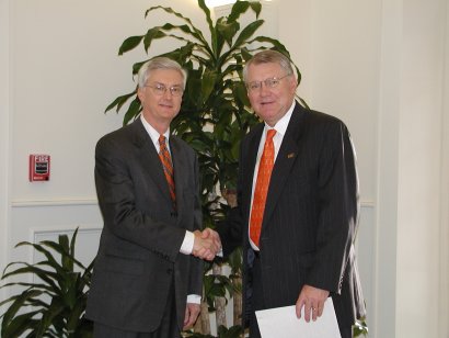 ExxonMobil Controller Don Humphreys presented a check to OSU President Dr. David Schmidly.