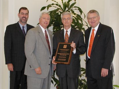 Robert Dooley, the Director of OSU's MBA program, and Dean James Lumpkin, were on hand for the plaque presented to Don Humphreys, along with President Schmidly.