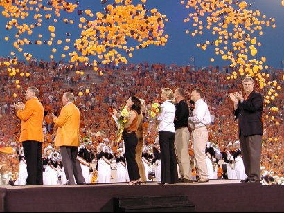 That evening at the game, the halftime ceremony was an explosion of fireworks and balloons.